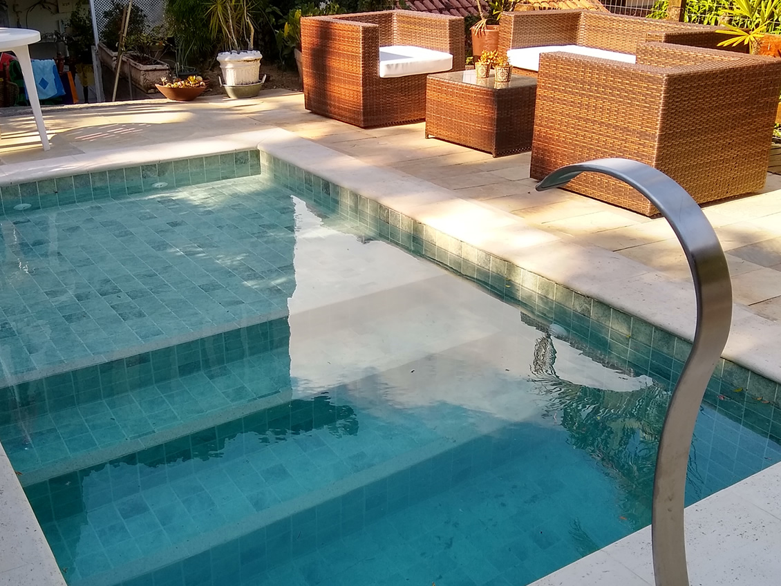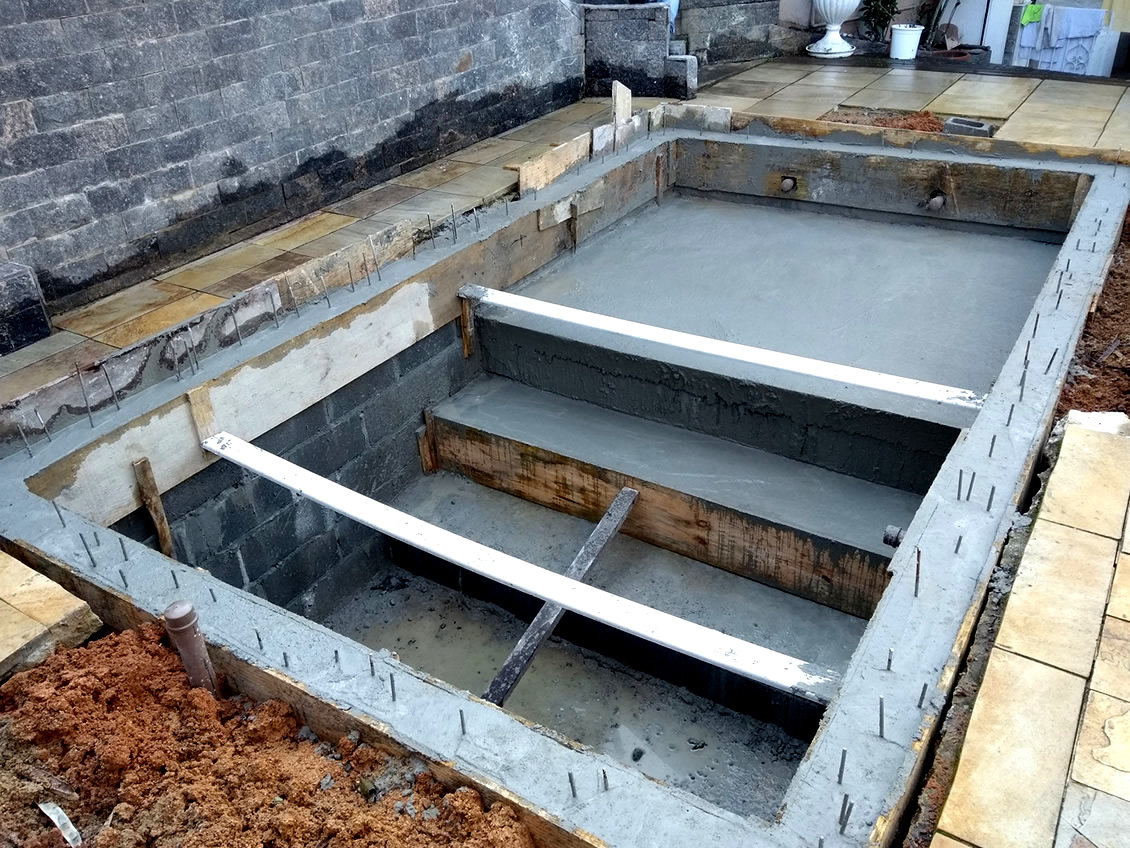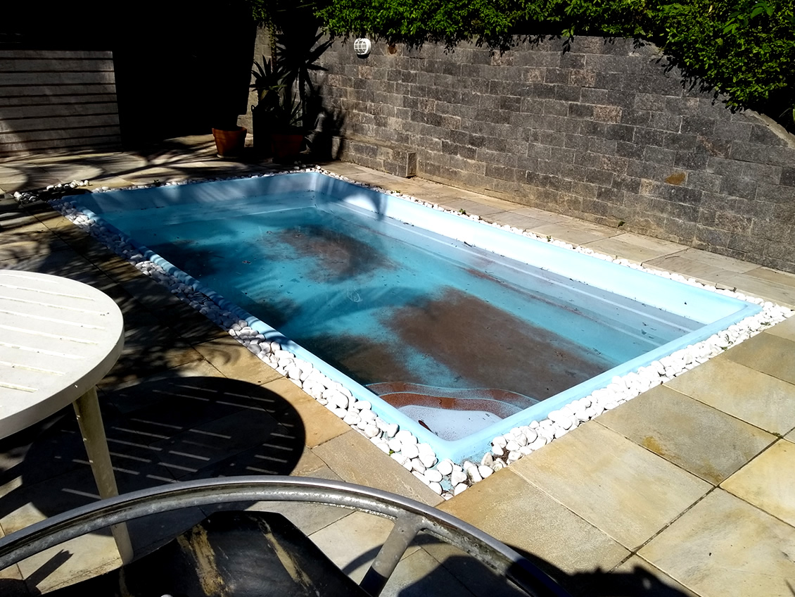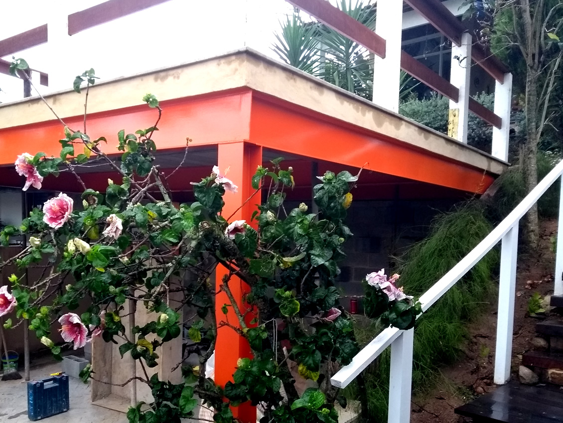 Demolição e retirada caramanchão em madeira para criação de garagem e deck em estrutura metálica, com guarda corpo em marcenaria 67m², demolição de piscina em fibra de vidro para confecção de estrutura e piscina em concreto, refazimento das instalações hidráulicas com com colocação de cascata, degraus e bordas solário em revestimento antiderrapante.